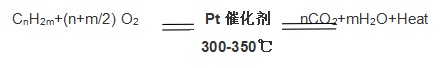 脫附下來的有機(jī)廢氣經(jīng)阻火器并經(jīng)主進(jìn)風(fēng)閥/旁通閥切換調(diào)節(jié)進(jìn)入熱交換器,通過熱交換器的換熱,使溫度較低的有機(jī)廢氣加熱到起燃溫度。然后升溫后的有機(jī)廢氣進(jìn)入氧化反應(yīng)床,生成 H2O 和 CO2,使氣體溫度上升,再經(jīng)熱交換器換熱,預(yù)熱脫附廢氣使溫度升高,并且高溫氣體降低,最后經(jīng)排風(fēng)機(jī)排放。
